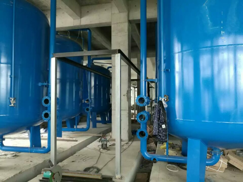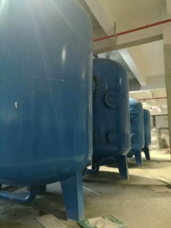 蘇州榮軒環保設計的這套自來水預處理設備,主要目的是去除原水中的懸浮物、膠體、有機物和余氯等妨礙后續反滲透運行的雜質,自來水首先進入砂濾罐:φ2.6m*4.4(總高),垂高2.0m,鋼板厚度10mm,級別Q235,內表面襯膠防腐5mm,外表面SA2.5級噴砂除銹至金屬光澤后,噴涂阿克蘇諾貝爾油漆。內部填充粗細粒徑石英沙,石英砂過濾器主要去除水中的懸浮物和膠體,水中大部分懸浮物和膠體在經過濾料截留而去除。