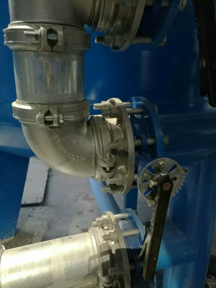然后進入碳濾罐:φ2.6m*5.90(總高),垂高2.8m,鋼板厚度10mm,級別Q235,內表面襯膠防腐5mm,外表面SA2.5級噴砂除銹至金屬光澤后,噴涂阿克蘇諾貝爾油漆,內部填充果殼活性炭。活性炭過濾器可根據其吸附機理去除原水中的余氯和有機物。